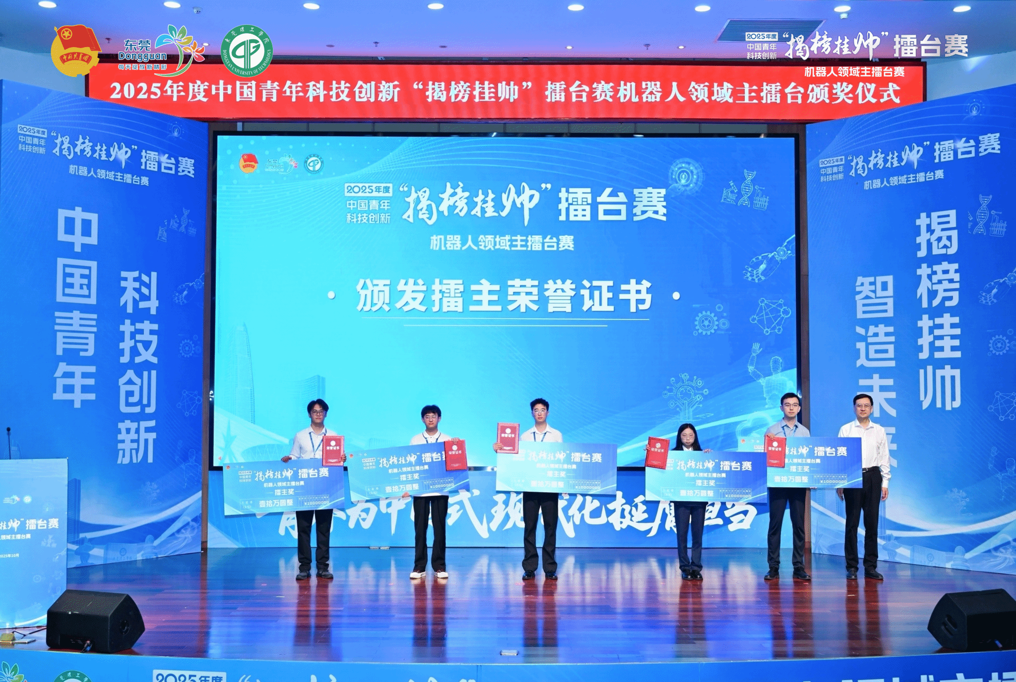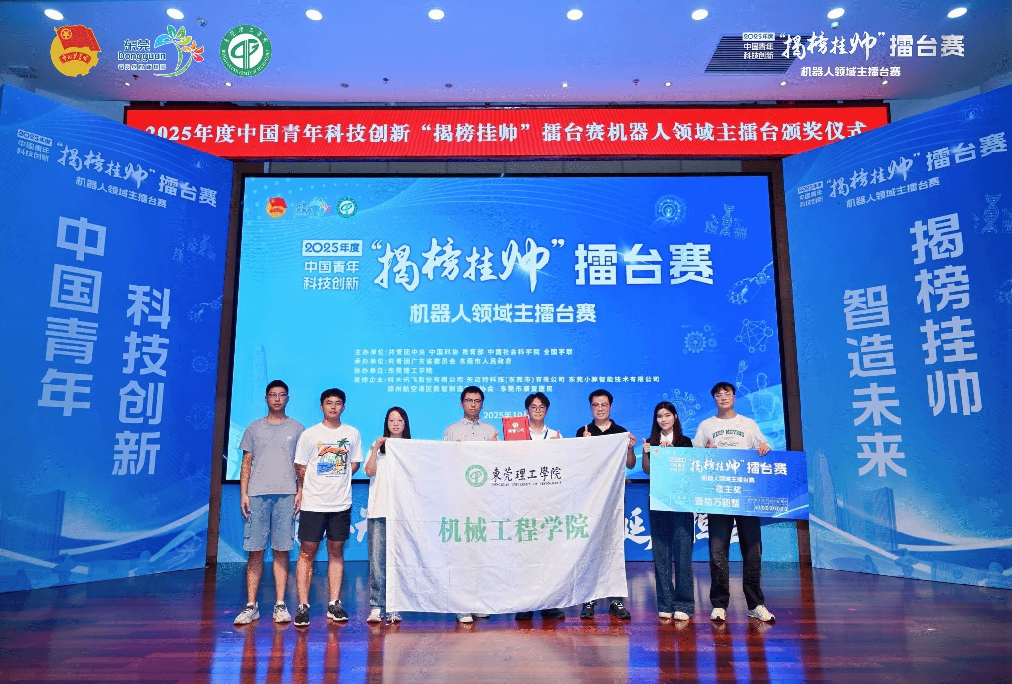 2025年10月10日-12日,2025年度中国青年科技创新“揭榜挂帅”擂台赛“机器人领域”终审擂台赛在广东省东莞市成功举办。fun88乐天使参赛项目《双动平台混联踝关节康复机器人》成功入围终审擂台赛,并最终夺得擂主!
