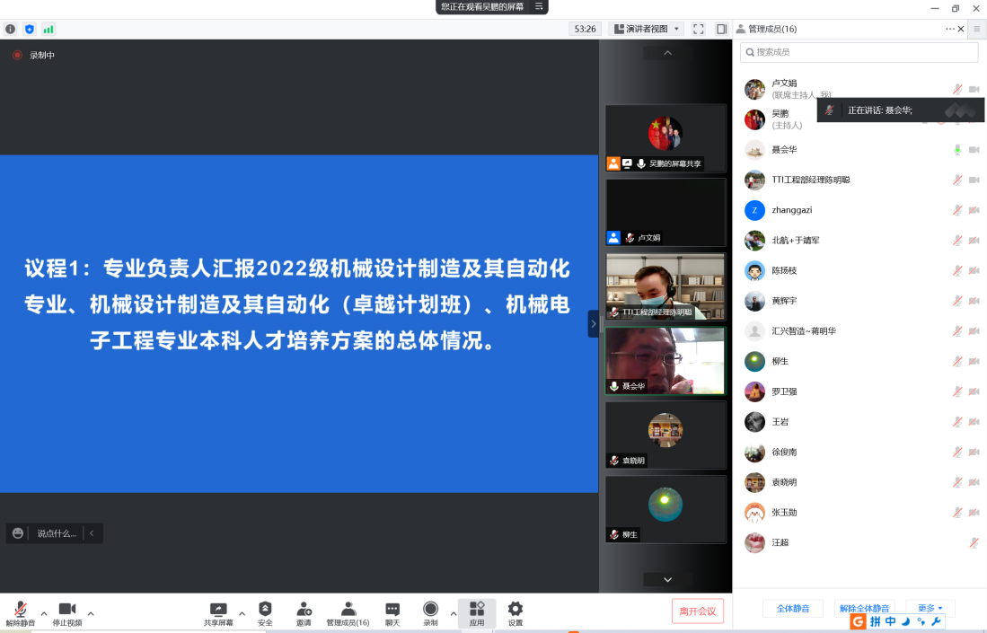 7月5日,fun88乐天使智能制造系线上召开了系内2022级机械设计制造及其自动化、卓越计划班及机械电子工程专业的人才培养方案咨询论证会。会上邀请了来自广东省机械模具科技促进协会、广东汇兴精工智造股份有限公司、北京航天航空大学、华南理工大学、燕山大学、伟易达集团、TTI集团、东莞市盛雄激光先进装备股份有限公司等工程认证咨询委员会专家及员工出席。fun88乐天使黄辉宇副经理、智能制造系卢文娟主任及系里相关老师作...