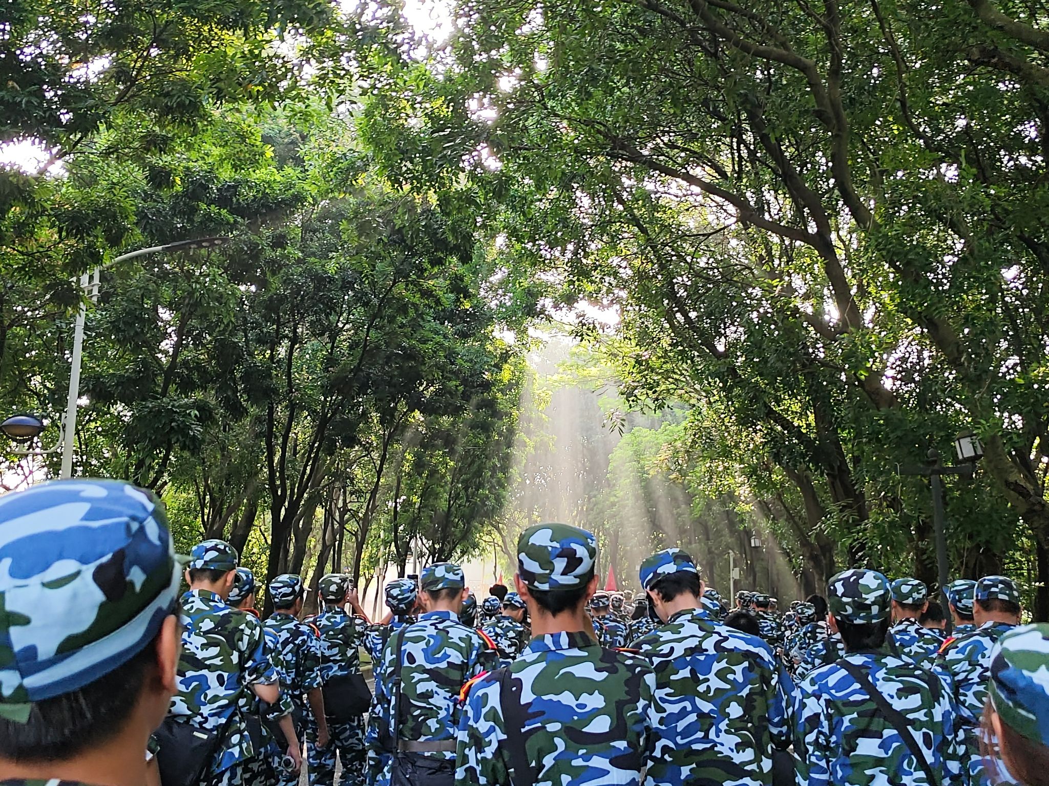 在近15公里的拉练过程中,一营学员展现出了良好的精神面貌,作为整个拉练队伍的“尖刀”,一营紧跟国旗护卫队,队列保持相对完整,同学们无一人脱队。教导员及指导员在途径华为欧洲小镇时,也抓住机会开展思想教育引导,介绍松山湖产业优势,鼓励同学们发扬军训精神,在学业上严格要求自己,争取可以加入华为等龙头企业,为中国智造作出自己贡献。