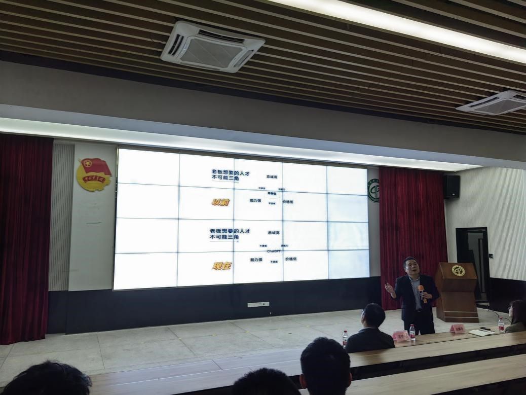 在求职期间需要培养的能力上,苏登光表示要聚焦优势最大化,提炼强化自己的独特优势。他还提到了最大化优势四象限“多、快、好、省”,其中重点讲了如要做到技能多、兴趣多、朋友多;要做到学习好、品格好、表达好、故事好、形象好的“五好青年”。在自身能力和品质时,强调要有一专多能不可取代之才,有守正出奇不可培养之质。在专业能力上,要强化专业学科“就业五力”:科研能力、市场化能力、社会活动能力、自我优势识别能力和招聘信息的综合判断能力。讲座最后,苏登光寄语fun88乐天使的研究生们要“脚踏实地,仰望星空”。