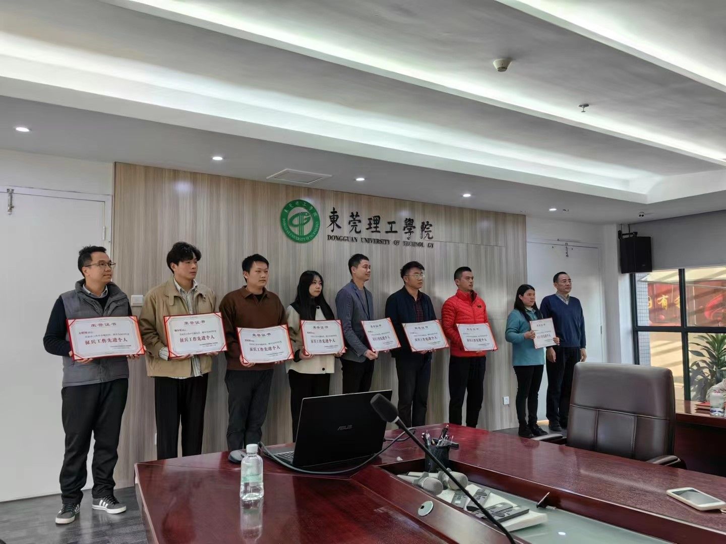 会上,公司对2023年征兵工作进行了总结表彰,fun88乐天使获评“2023年征兵工作先进单位”,fun88乐天使征兵工作专员郭家润同志获评“2023年征兵工作先进个人”。杨敏林为受表彰单位和个人颁发奖牌和荣誉证书。