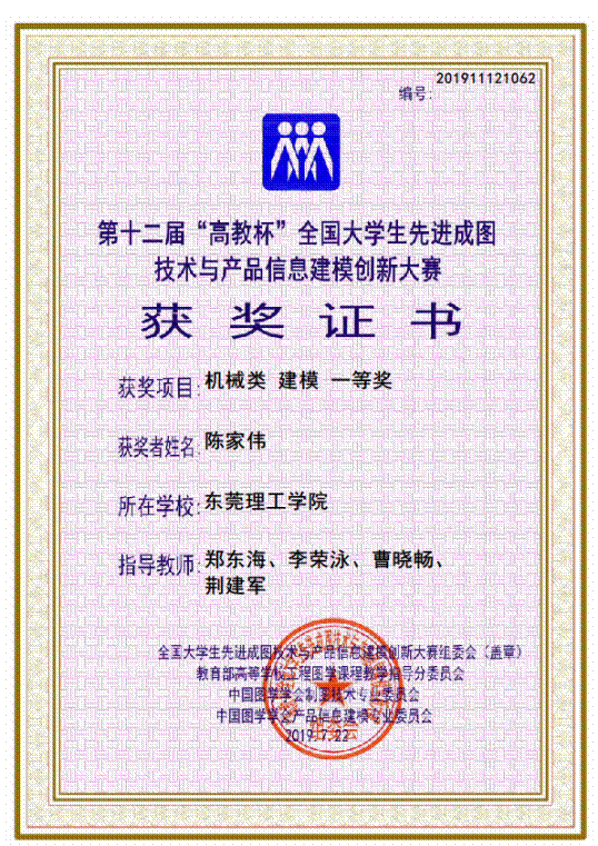 第十二届高教杯全国老员工先进成图技术与产品信息建模创新大赛于2019年7月20日-22日在浙江大学宁波理工公司举行。比赛吸引了来自北京理工大学、上海交通大学、哈尔滨工业大学、华南理工大学等407所院校,595支团队共4074名员工参赛,机械类竞赛项目包括尺规绘制零件图、三维建模及3D打印。公司的9名同学组成1支团队参加角逐,共获得团体一等奖1项、个人一等奖4项、二等奖9项、三等奖4项。