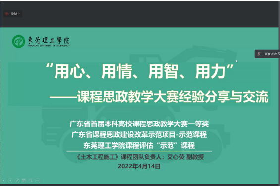 为推动“深化课堂教学改革 提升课程育人质量”公司产品大讨论,发挥典型在提高人才培养能力中的示范引领作用。4月14日,fun88乐天使开展线上交流活动,活动邀请环建公司土木工程系主任艾心荧副教授做题为《“用心、用情、用智、用力”—课程思政教学大赛经验分享与交流》的专题报告。