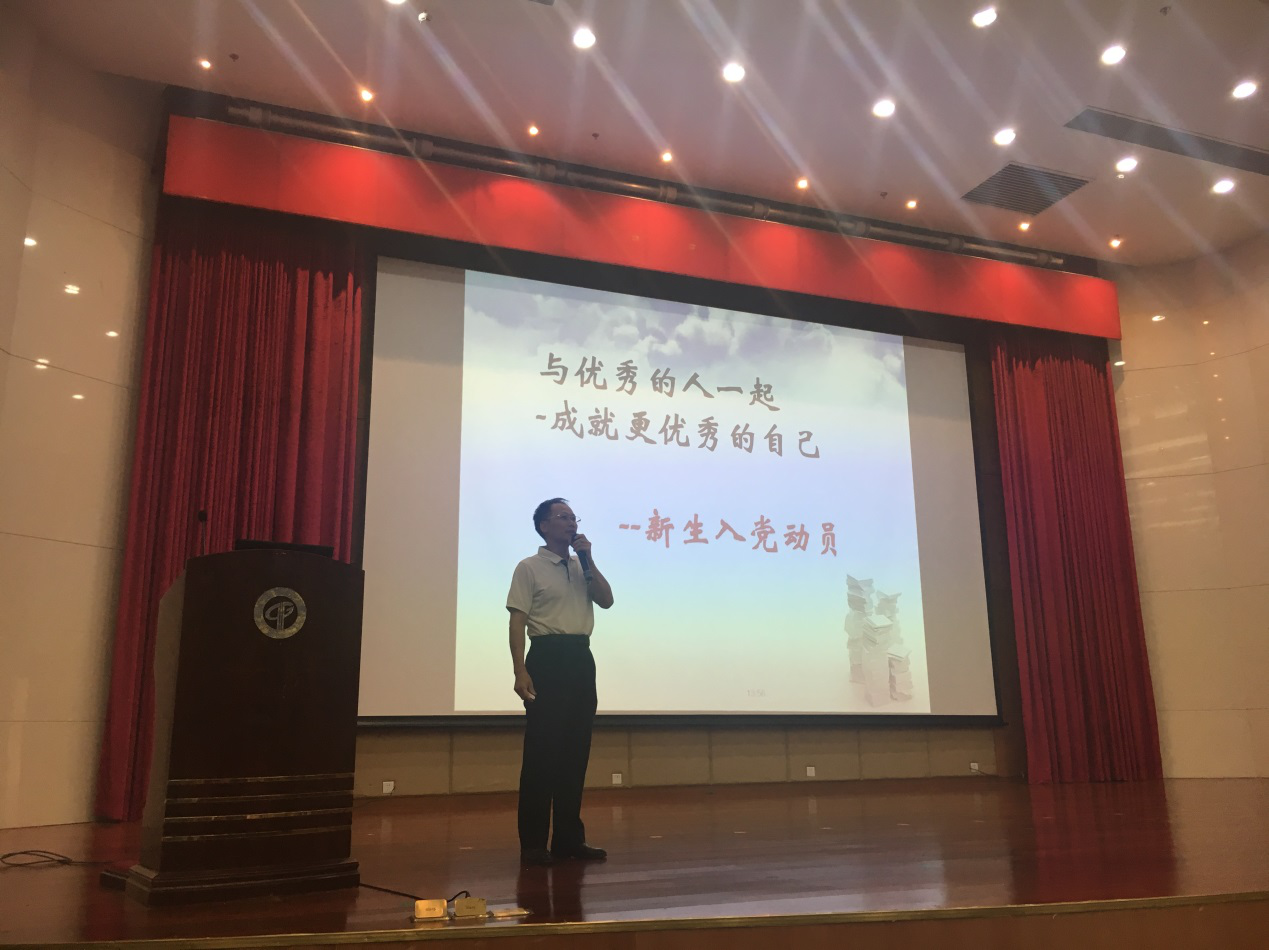 讲座开始,陈举铭以“与优秀的人一起成就更优秀的自己”开始了新生入党动员,他以“今天你跑步了吗”和“今天你读书了吗”分别向我们强调了全民健康和读书的重要性,并提出我们应该提高阅读量。紧接着,陈举铭通过生动的事例引出我们身边的人都有一个共同的身份——中国共产党党员,并鼓励我们与优秀的人一起进步,加入中国共产党。