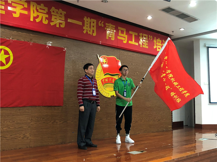 紧接着,举行了授旗仪式,党总支书记钟守炎为此次青马班授旗,并作鼓励讲话。钟守炎书记表示对此次青马班高度重视,强调员工骨干肩负着中华民族伟大复兴的历史使命,要具有坚定的政治思想与过硬的工作本领,并提出了几点要求,分别是坚定理想信念,加强政治理论学习;知行合一,践行初心;敢于奉献,争当员工模范。