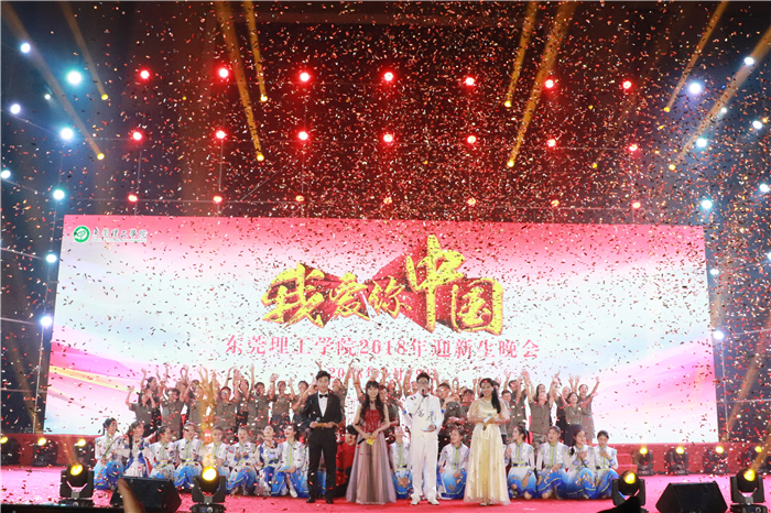 紧接着,迎新生晚会正式拉开序幕。晚会分为三个部分,分别是上篇:我爱莞工蓝,中篇:我爱迷彩绿,下篇:我爱中国红。歌曲、舞蹈、朗诵和舞台剧,精彩纷呈的节目令观众应接不暇。各式节目不仅展现了爱国情怀又融合了青春、活力、创新的元素,点燃了新生们的激情,现场始终热情高涨,欢笑声、欢呼声、掌声起伏不断。