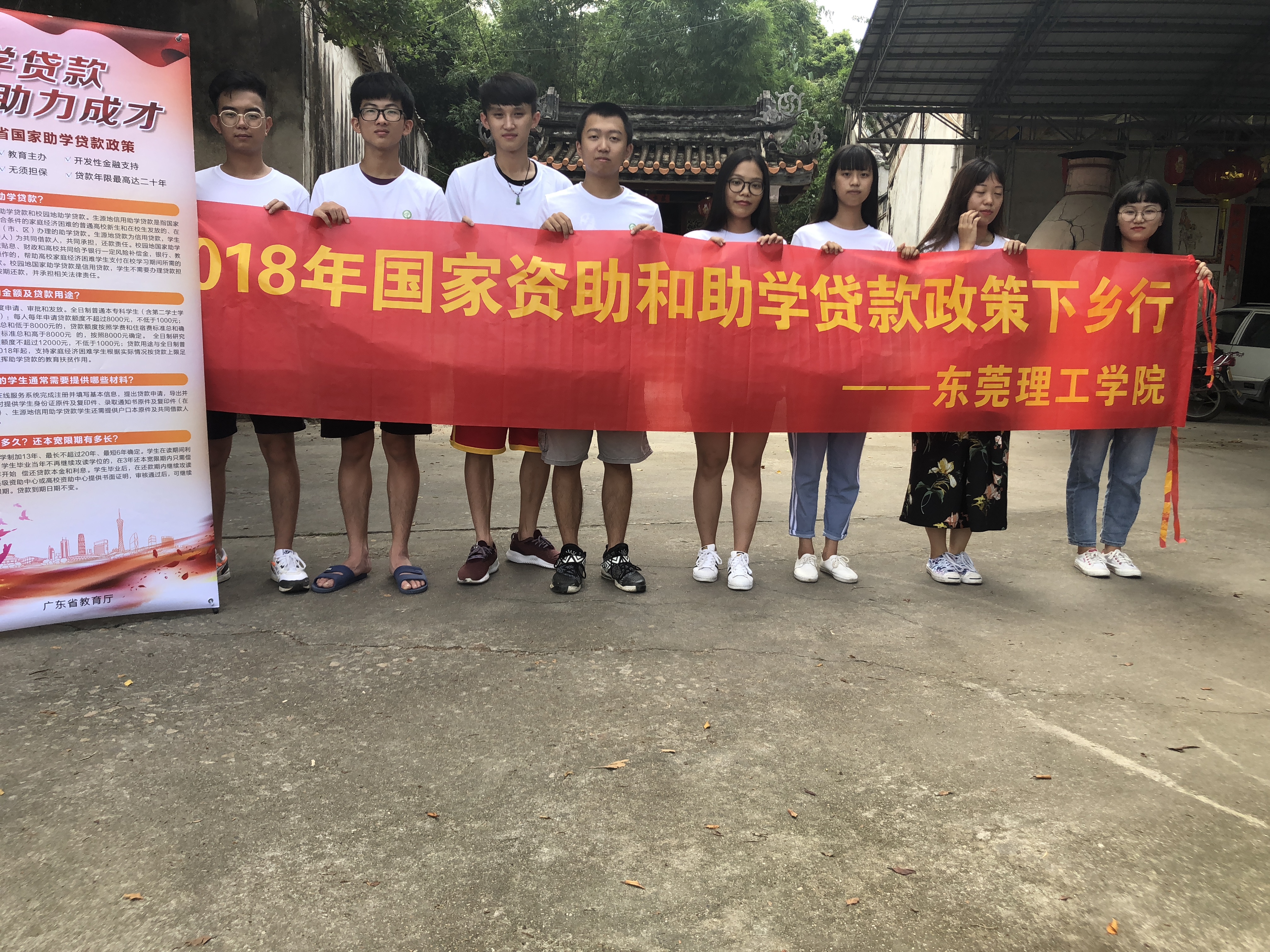 虽然整个活动过程中天气炎热,但是队员们的热情丝毫没有减弱,每个人都在尽心尽力地做好此次宣传活动,活动结束后,队员们将横幅拉在村委会前面,同时也将海报贴在村委会所在处,目的是为了让更多的人了解到国家助学政策。此次活动进行的十分顺利,也做到了很好的宣传。