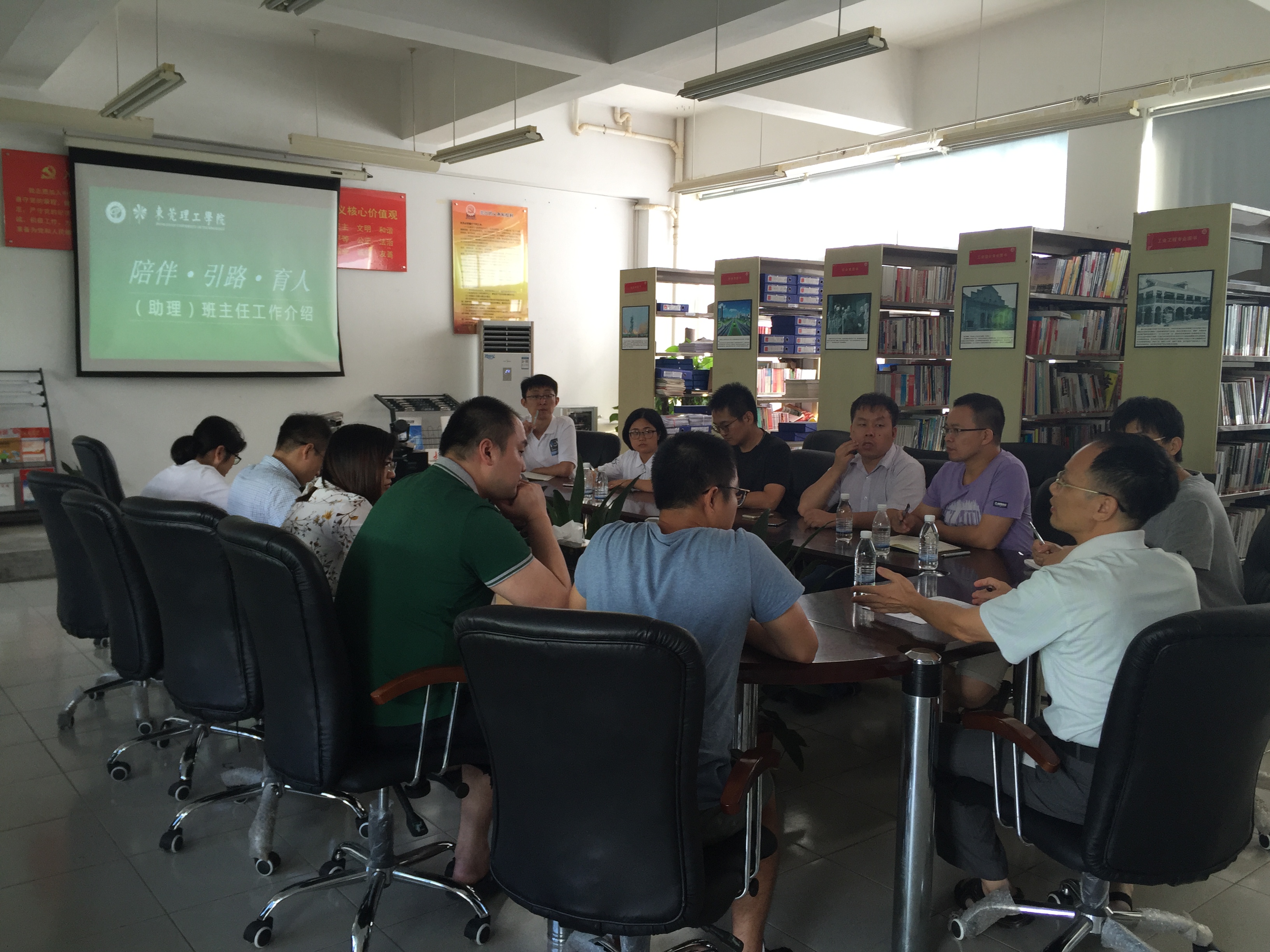 会议第三部分,由李钰田主持与助理班主任座谈。座谈会开始,陈书记总结了往届助理班主任在开展工作存在的主要问题,并向新一批助理班主任提出在开展工作时,不忘自身的学习状况等要求,还强调了要加强各班主任与助理班主任间的交流与配合,以便时刻了解新生适应老员工活的情况。负责2018级新生的辅导员姜雄华也谈了工作展望。接着,李老师介绍往届新生入学教育的情况,并从学业指导、安全教育、指导班委和开展主题班会等方面为助理班主任开展新生工作勾勒出大致的轮廓。在座谈会上,各助理班主任对迎接新生工作中的常出现的转专业、宿舍分配、资料上交等问题提出了自己的疑惑,辅导员老师和助理班主任也交流了想法。