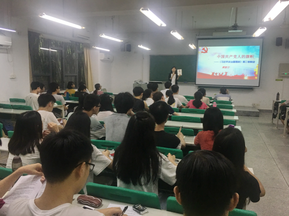 为了加强同学们对习近平新时代中国特色社会主义思想的了解与认识,机械工程公司党总支于2018年6月7日在6E101开展了关于《习近平谈治国理政》第二卷的导读学习会。本次学习会由黄楚刁老师给大家讲解《习近平谈治国理政》第二卷的主体框架及其重要内容。