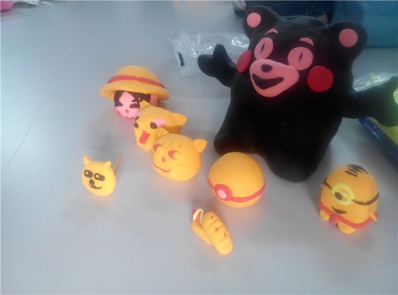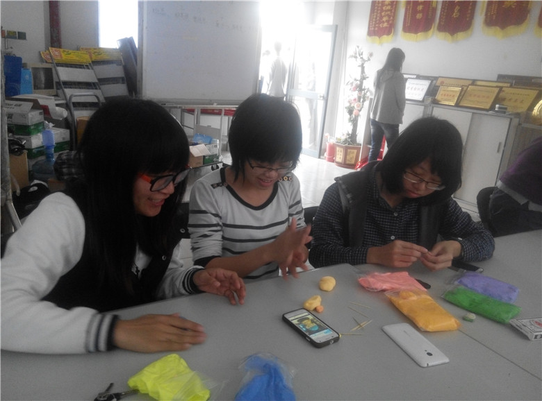 下午3点,随着按钟“叮”的一声响,游戏正式开始。首先进行扑克游戏来选取黏土材料的颜色,参赛女生们都紧张而又兴致地玩起扑克游戏,接者又认真细心地挑选自己队员所喜好的样色。活动室的场景就像炸开的沸水一样好不兴致。选取好了材料颜色,接者就是考验团队的协调创作的环节——制作模型。在这环节内,各组 “八仙过海,各显神通”,上演了一番别样的视觉盛宴。有的团队拿出笔记本,有条不紊地计划去捏造可爱的动漫模型;有的就用手机搜寻找一些精致的手工模型进行临摹;还有的团队就凭借天马行空的想象力,把黏土捏出自己想要的形态。不一会一个个天真萌娃模型就呈现眼前。到了4点,比赛结束,所有团队的作品也已经摆放整齐。通过参赛者们彼此间的互动评价得出比赛小组的名次。最后由志愿者公布统计数据并派发奖品。