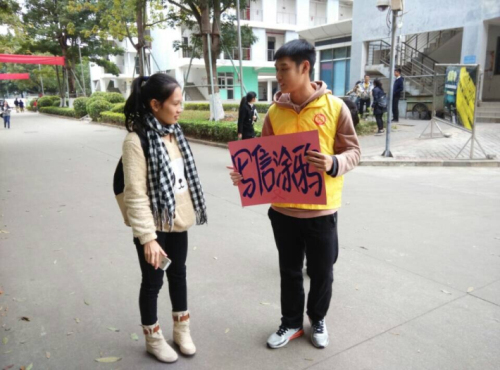 12月12日,fun88乐天使志愿服务站的志愿者们在员工公寓广场设置宣传点,开展了主题为“飞鸽传情,大四你好”的志愿活动。
