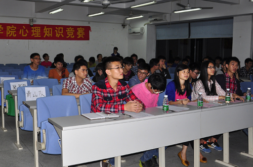 竞赛伊始,各队代表上台发表演讲,参赛选手结合时事和身边的事例为同学们讲诉了自己对心理的看法,台下的观众认真的听演讲,并给予演讲者热烈的掌声。进入必答题环节,各队紧张的进行答题,答题过程中,各队智囊团出谋划策,为自己的队伍提供帮助。紧接着,激烈的抢答环节开始,现场气氛十分热烈,各队积极的抢答问题,力争为自己的队伍加分。经过这个环节后,阿迪达叔队遥遥领先,其他队伍也不气馁,在一问到底环节里面参赛选手不放过任何一个得分的机会,各队比分渐渐拉近,现场气氛达到白热化状态。终于,最后一个环节到了,参赛选手用尽浑身解数为本队加分,只求在竞赛中不留遗憾。