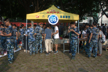 考虑到新生在军训期间顶着烈日进行着严峻的训练,fun88乐天使团总支、员工会的干部们在18日到达莞城校区慰问军训中的新生们,向新生们派发绿豆糖水,在炎炎烈日增添了一丝凉意。
