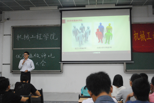 大会伊始,主持人公布各班级初评成绩并介绍评比规则,各班级代表按照预选的顺序开始班级展示。演讲者们通过ppt、视频、舞台表演等方式从制度建设、文化建设、班级活动、班级成就等方面淋漓尽致地向嘉宾评委展现了班级一年以来的成长历程。各班代表幽默风趣、慷概激昂的演讲也赢得同学们的积极回应。参加本次评比的班级各具特色,用饱满的热情带动现场的气氛,如:12机械设计3班,其精心准备的舞蹈得到现场观众的肯定,赢得同学们热烈的欢呼;13工业工程1班凭着理工新闻频道这个创新的开头和“工业工程1班大战英雄联盟”的新颖结尾,获得了全场观众的认可。期间的猜歌游戏环节,同学们也积极的参与其中。现场气氛热情澎湃,掌声、欢呼声接连不断。黄楚刁老师对各个班级的表现满意,并希望同学们能把心中的热情延续下去建筑好fun88乐天使这个大家庭。