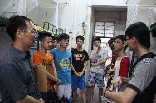 期末考试即将来临,为了更好地了解莞城校区员工的学习、生活情况,5月15日下午,机械工程公司党总支副书记陈举铭、思想政治辅导员肖毅在团总支、员工会部分干部以及各班的班长的陪同下走访公司员工宿舍。