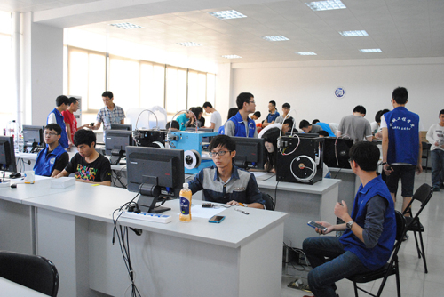 4月13日,继巡线竞速赛后,fun88乐天使Makeblock老员工机器人第三轮比赛在机电楼12C314举行。