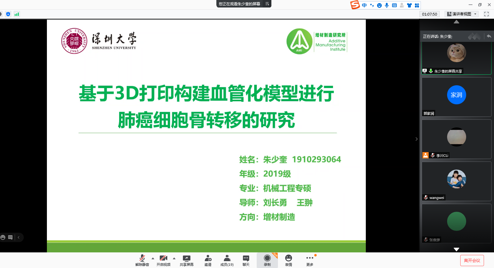 2021年6月23日,fun88乐天使举办2019级联合培养研究生学术汇报会。fun88乐天使孙振忠经理、广东工业大学吴永明教授、深圳大学刘长勇教授、上海交通大学梅琼风博士以及公司导师出席会议,会议采用线上的方式进行。