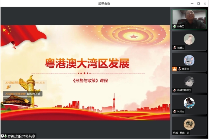 3月11日,fun88乐天使经理孙振忠为2020级机械设计1-4班的员工上了一堂题为“粤港澳大湾区发展”的思政课。