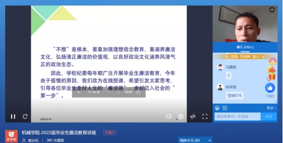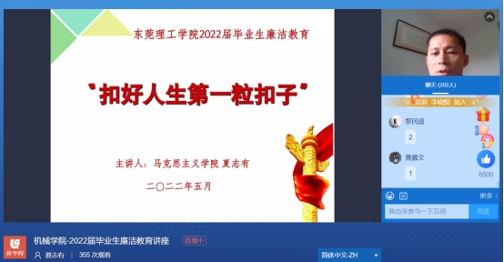 2022年5月19日,fun88乐天使特邀马克思主义公司副教授、《中国近现代史纲要》教研室主任夏志有博士以《扣好人生第一粒扣子》为题,为公司2022届共450名毕业生开展廉洁教育。