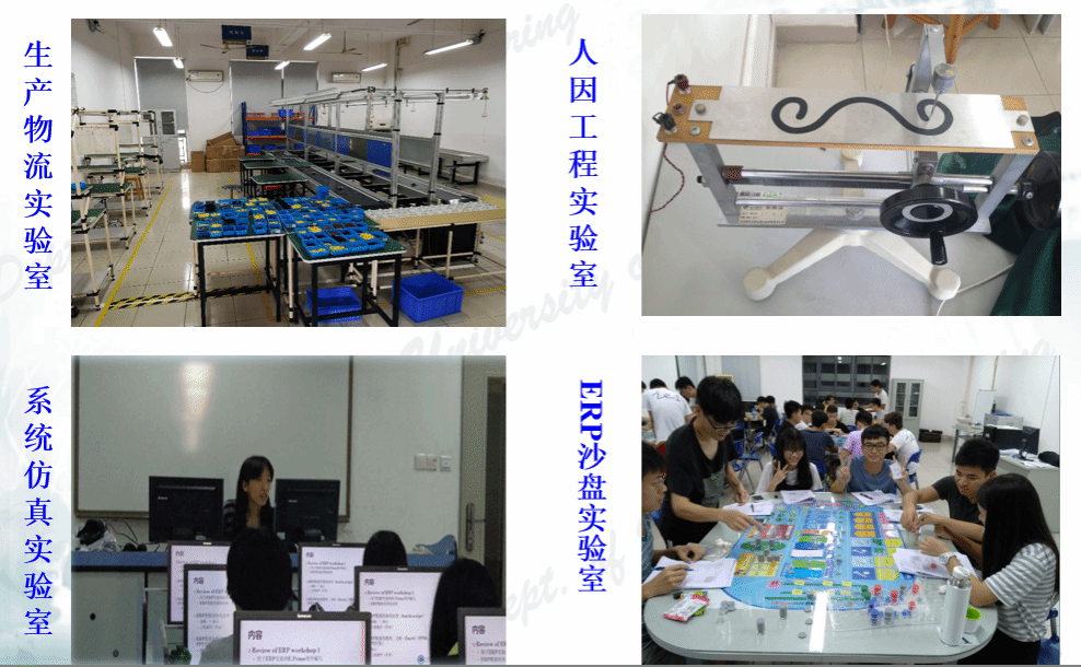 实验室:广东省制造过程智能控制与优化工程技术研究中心、广东省智能制造系统健康监测维护工程技术研究中心、虚拟仿真实验室、生产与物流实验室、人因工程实验室、ERP沙盘实验室。