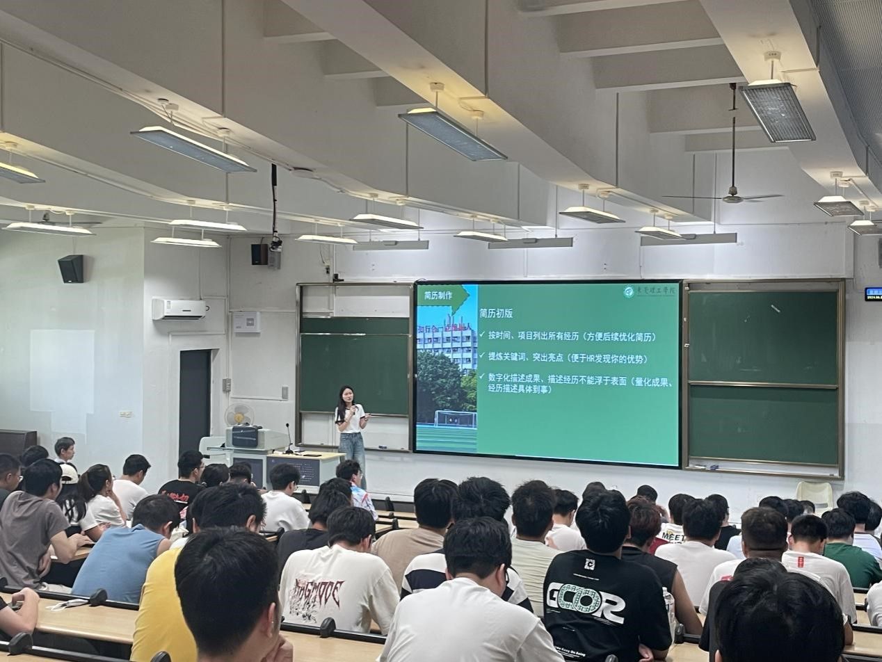 首先,梁秦同学对就业求职经验进行了分享。她结合个人求职经历,详细阐述了简历制作、面试技巧以及职业规划的重要性,并鼓励师弟师妹们要勇于尝试,积极寻找适合自己的岗位;在求职的过程中,一定要提前做好准备,将求职材料和求职岗位相匹配,最大程度提高成功率。