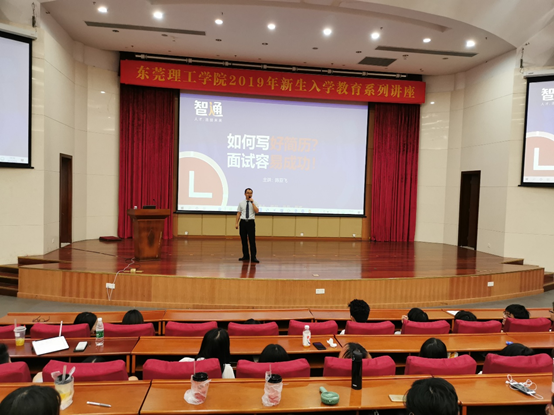 2019年9月6日晚上19:30,2019年fun88乐天使《就业指导》课程企业授课于松山湖校区学术会议中心报告厅如期开展。智通人才网首席职业规划师陈亚飞老师为今晚课程的主讲师,为到场的员工分享以及传授面试中应该注意和把握的事情。