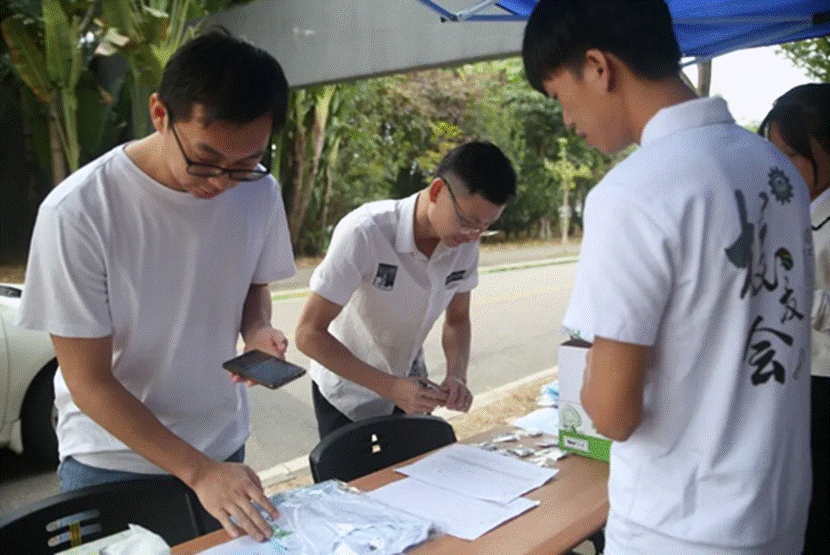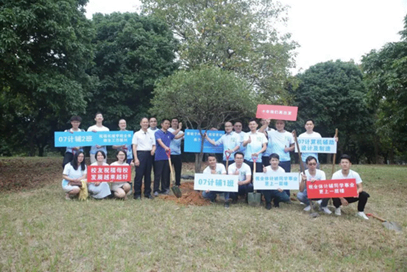 员工们返校后在指定位置进行签到。为加强员工与母校之间的感情,此次活动派发纪念品。看着他们自己曾设计过的院徽形状,十载光阴中的往事不断重演。背景墙上的照片见证了他们光芒万丈的青春。团聚会前,员工们来到飞机楼下参观照片墙并拍照留念。本次活动07级计辅员工为母校捐赠了一棵黄栀子树,代表着对母校的关怀以及祝福。活动当天,员工们前往员工林植树。通过黄栀子树,祝愿母校发展更好,全体师生工作顺利,全体计辅同学事业更上一层楼。