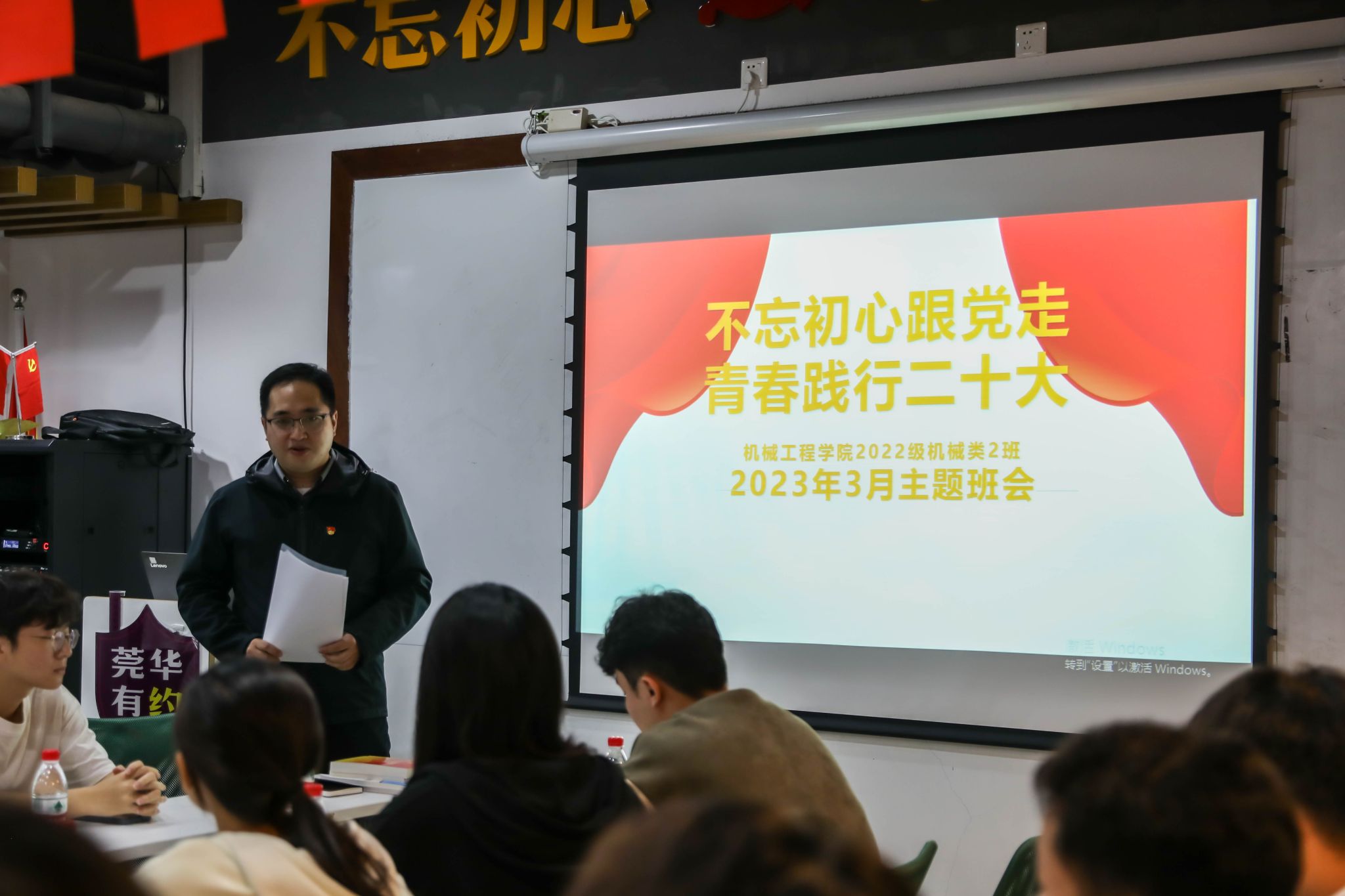 3月2日晚,公司党委书记成洪波参与联系班级——2022级机械类2班组织的“不忘初心跟党走,青春践行二十大”主题班会。党委学研工部、fun88乐天使、马克思主义公司相关老师及2022级机械类2班全体在校同学参加了班会,班会由2022级机械类2班班主任邓维伟主持。