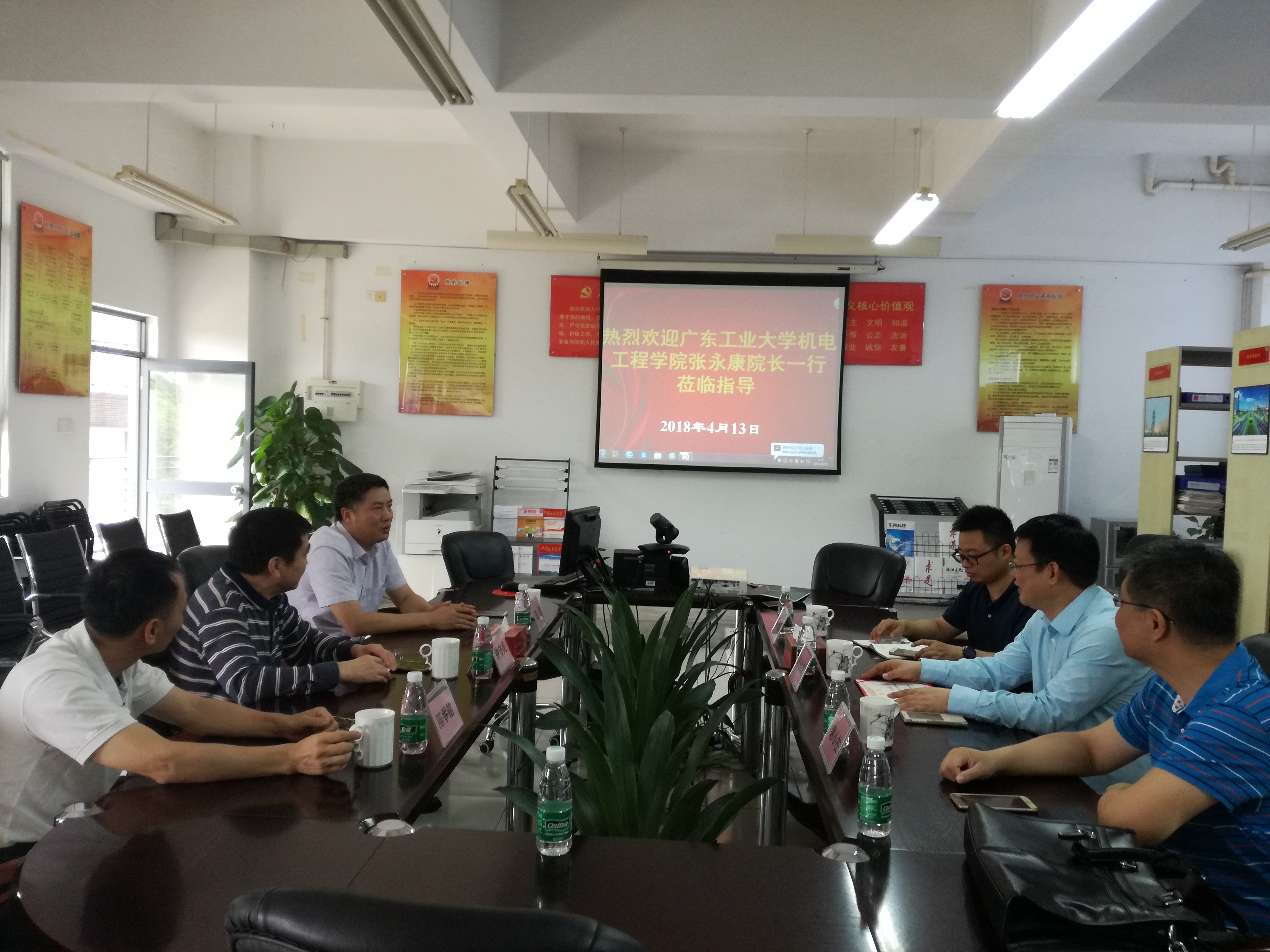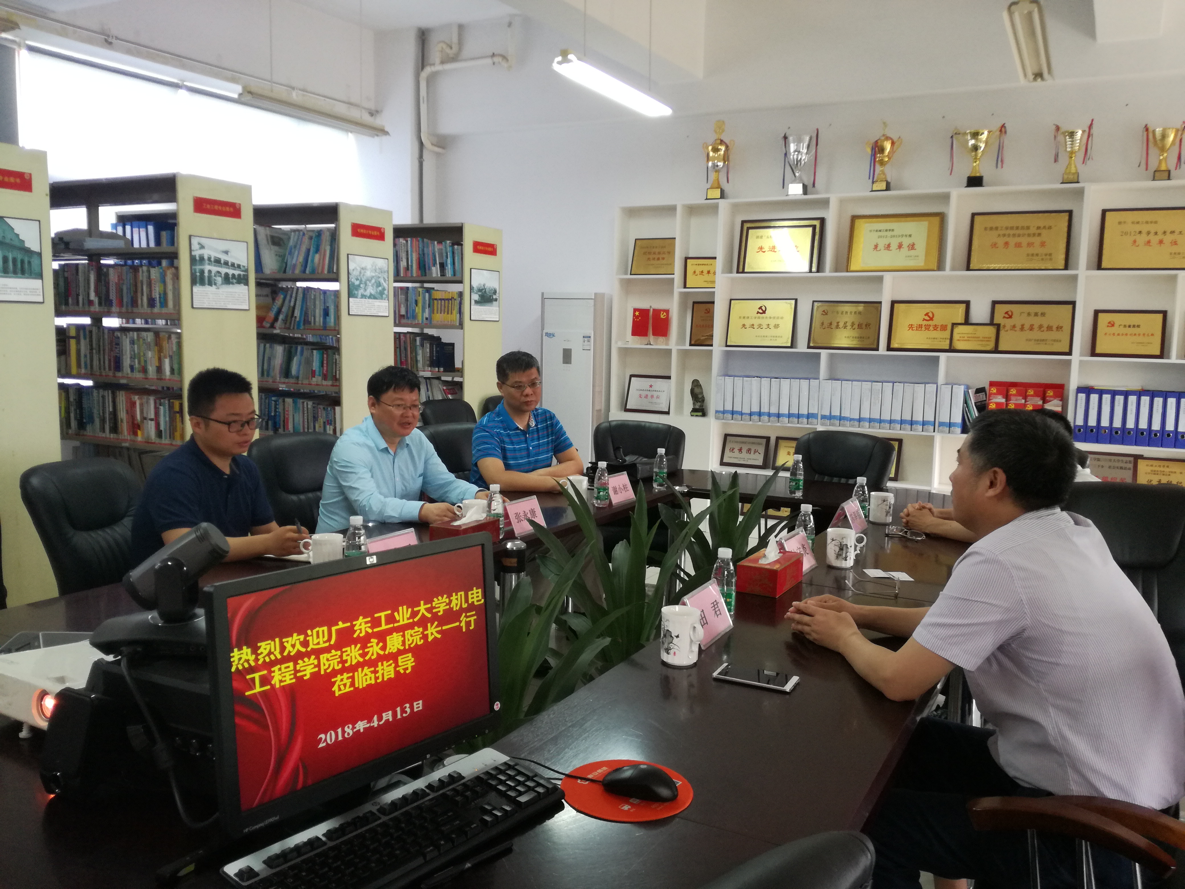 2018年4月13号上午,广东工业大学机电工程公司经理张永康一行到访fun88乐天使学习交流,机械工程公司党总支书记钟守炎、副经理田君、副书记陈举铭出席此次接待活动。
