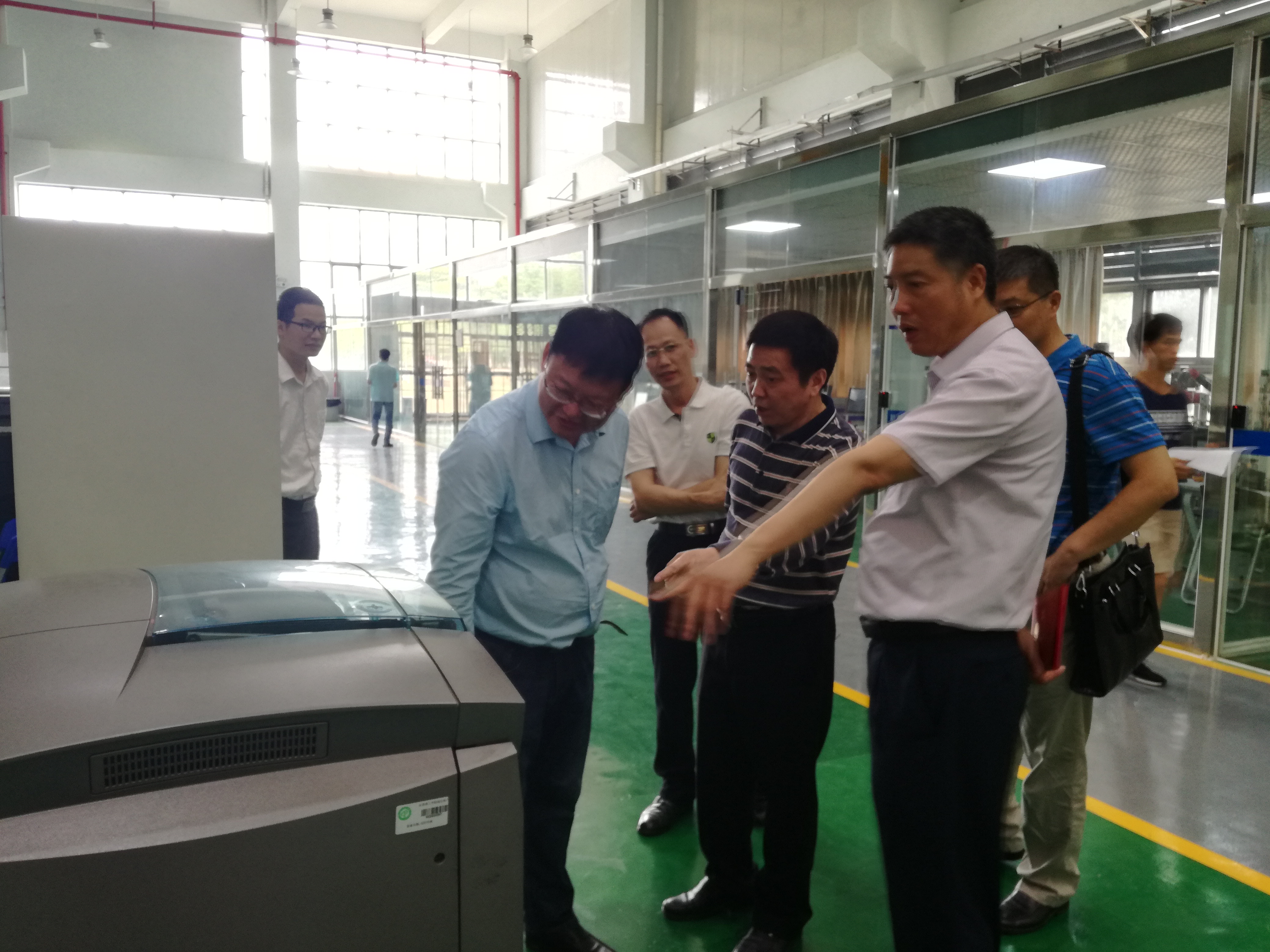 最后,田君副经理带领张永康经理一行人参观了公司的数字装备工程训练中心,详细介绍了中心的金属3D打印实验室、智能化大数据车间监控平台、机器人员工创新区、3D打印员工创新实验室等情况。