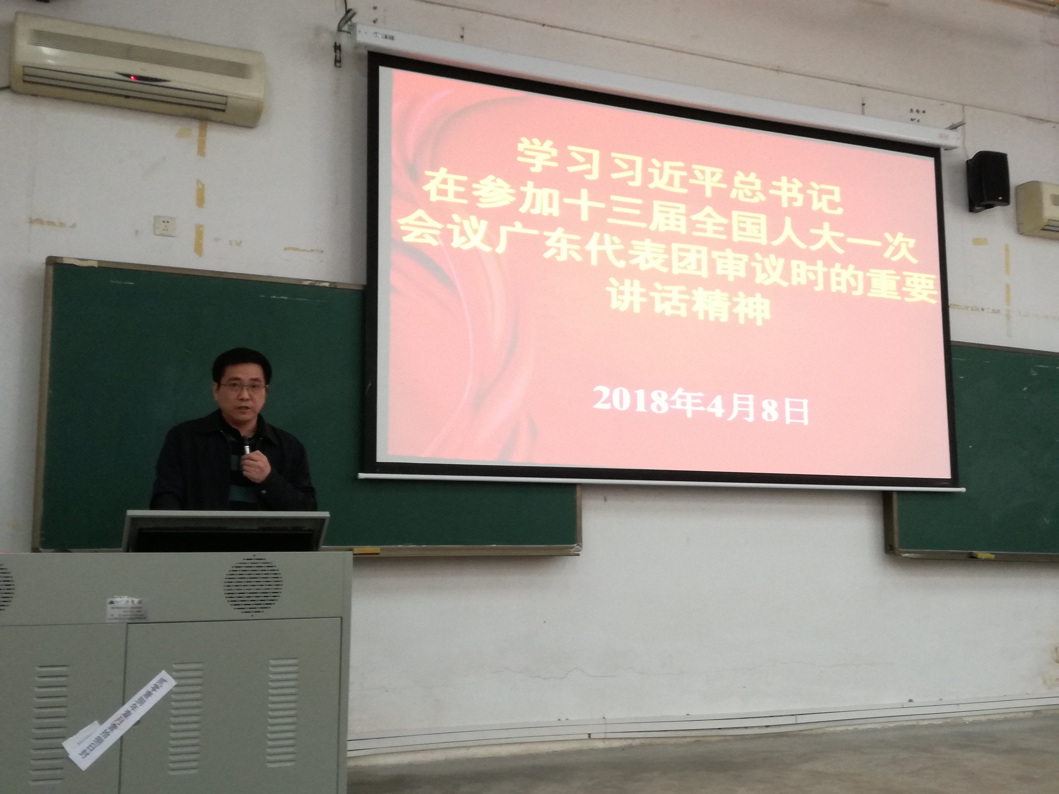 为了进一步加强全体教师和员工党员对习近平总书记在参加十三届全国人大一次会议广东代表团审议时的重要讲话精神的认识,fun88乐天使于2018年4月8日下午在6B101教室开展了本次学习会议,全体教师和员工党员出席了本次会议。会议由公司党总支书记钟守炎主持,马克思公司宣讲团郭奕鹏老师主讲并带领我们一起学习了相关重要讲话精神。