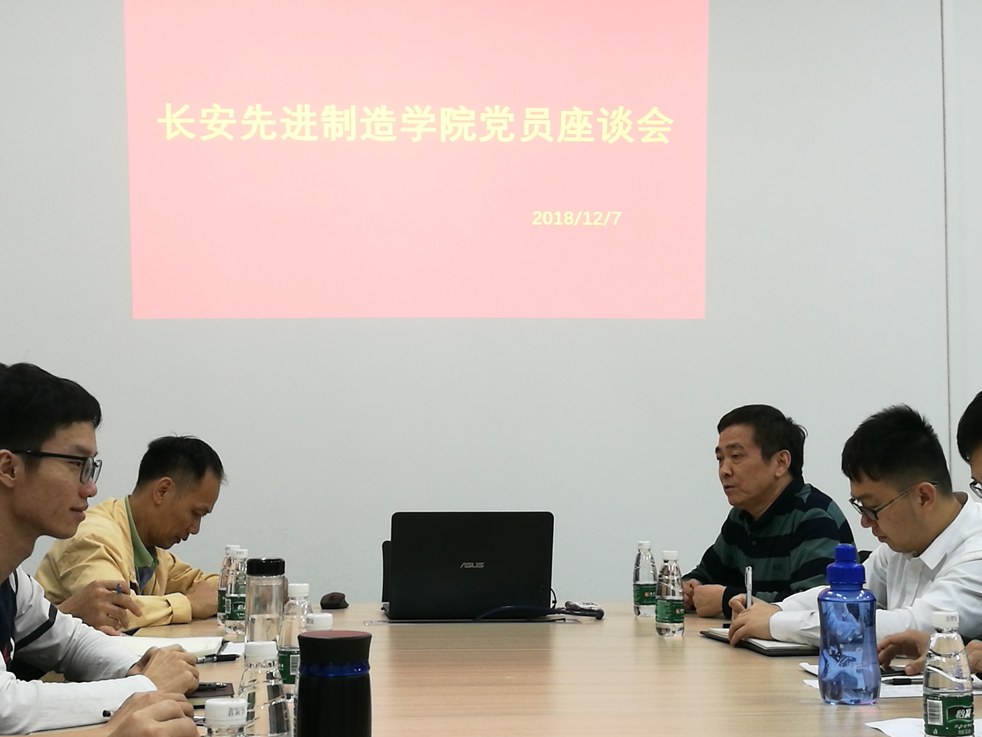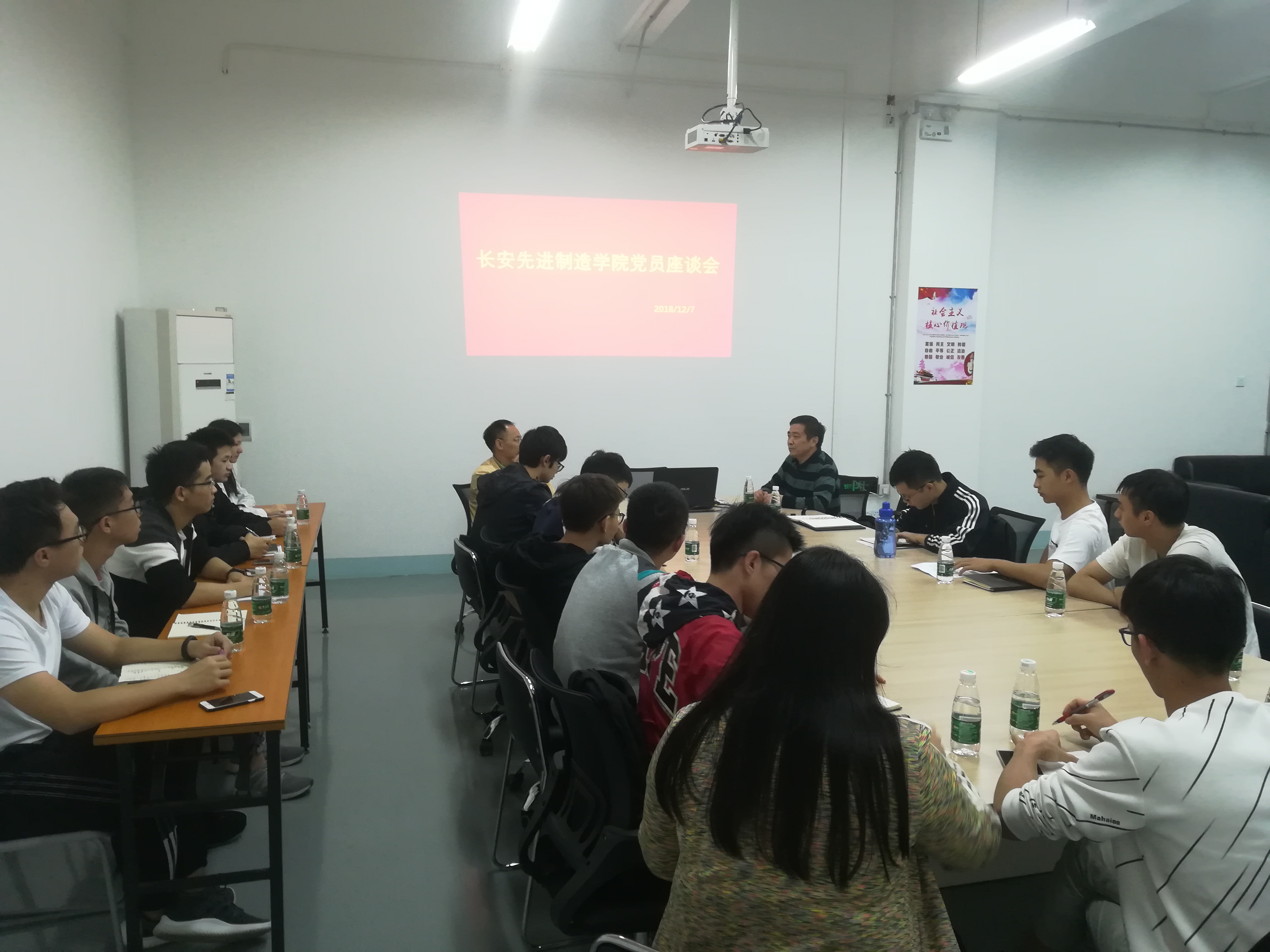 为深入学习贯彻习近平总书记视察广东重要讲话精神,2018年12月7日下午,公司在长安先进制造公司教学楼211会议室召开员工党员座谈会。出席人员包括机械工程公司党总支书记钟守炎教授、党总支副书记陈举铭老师、辅导员罗嘉楠老师和2015级全体员工党员。
