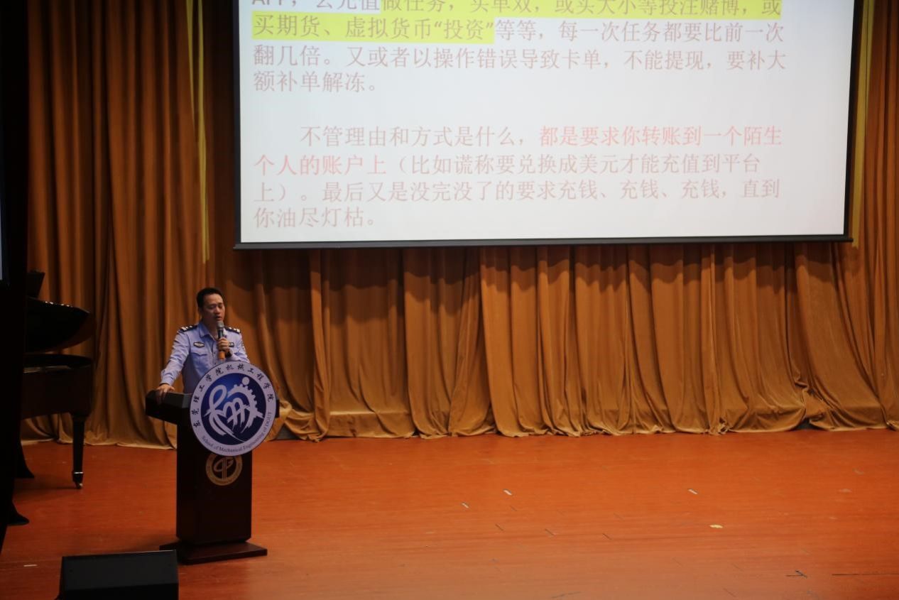 本次宣讲会旨在帮助在座的各位同学提高警惕,将诈骗拒之门外。老员工在专业学习之余,要增加自身的社会经验,加强自己的社会适应能力,同时还要重视安全教育,提高自身的安全防范意识,树立好正确的价值观和消费观,遇到模棱两可的事宜及时与老师、家长沟通。