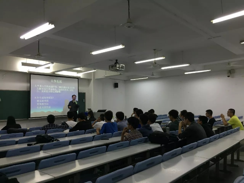 陈勇志老师从“适应和规划生活,学会学习和学会发展”三大方面展开,给同学讲述了大学四年应该怎么样过,怎么样过好。陈老师结合他自己亲身经历热情洋溢地演讲,同学们认真聆听。