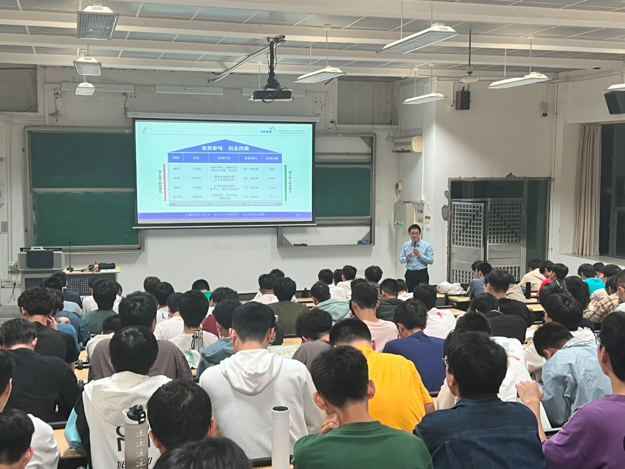 随后,宋小平结合工业工程的发展历史,分析当前世界各国工业工程专业毕业生的就业状况。进一步结合自身企业实践经历,以“6W2H”的框架向同学们阐述精益的内涵,并以生动形象的精益管理实践案例让同学们领悟精益的力量。