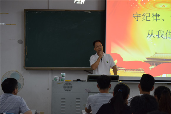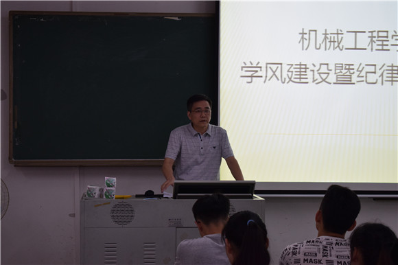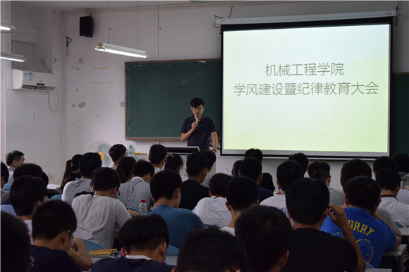 10月8日周六下午两点三十分,公司在6D401召开学风建设暨纪律教育大会。与会人员有:机械工程公司党总支书记钟守炎教授,党总支副书记陈举铭老师,团总支书记、思想政治辅导员肖毅老师,全体员工党员以及14级15级班级班长、团支书、学习委员、生活委员、心理委员。