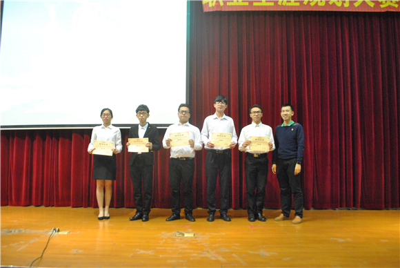 本次比赛获得一等奖的是材料成型及控制2班的陈施诺,获得二等奖的是材料成型及控制1班的王俊超,获得三等奖的是机械设计5班的郭宇浩,获得优秀奖的分别是机械设计4班的叶凯冬和工业工程2班的赖文杰。没有获奖的同学也同样优秀,比起大多数人,他们已经踏上了那块舞台,也有了属于他们的职业规划目标,愿他们乘风破浪,抵达理想的彼岸。最后,在场的全体员工和老师合影留念。2015级职业生涯规划大赛圆满落幕。(余佳鹏/文  郑春燕/图)
