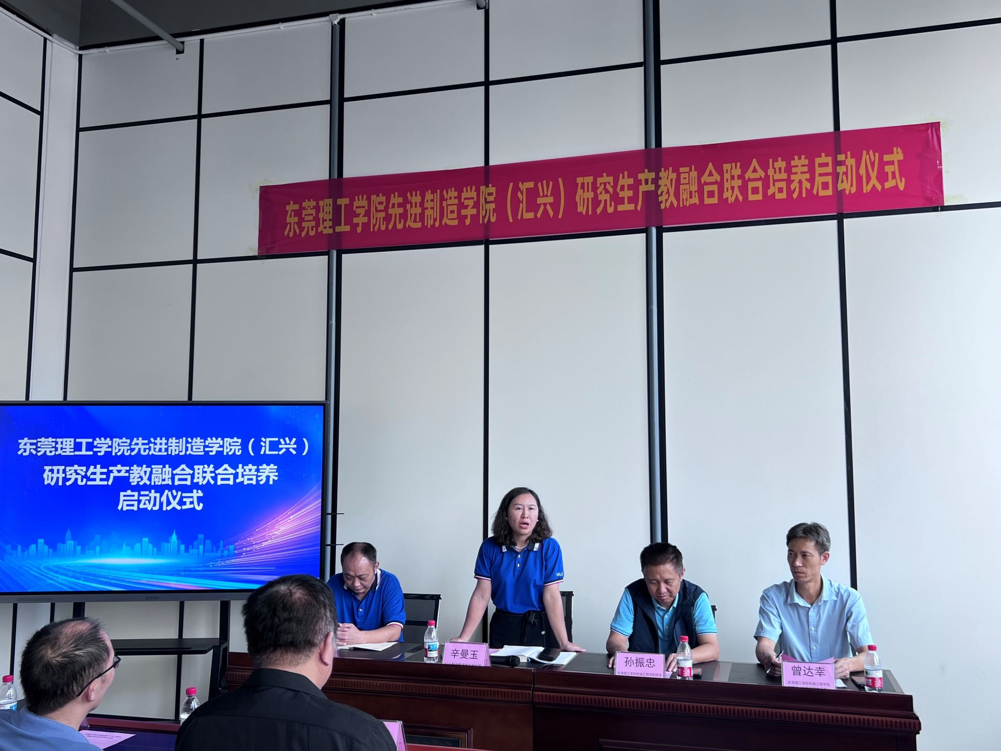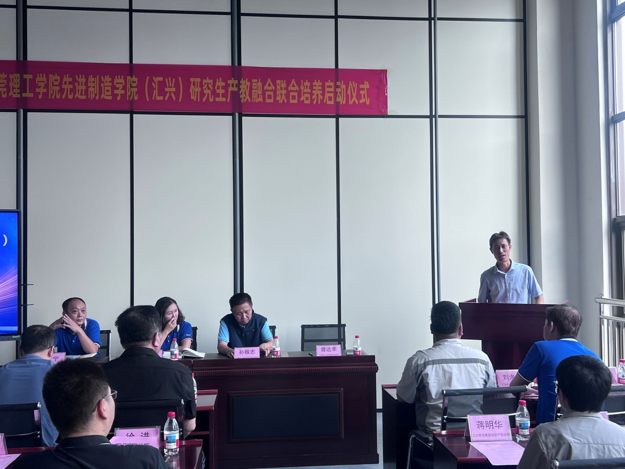 本次研究生产教融合联合培养项目的成功启动,适值fun88乐天使先进制造公司深化产教融合教学改革,打造市域化产教合作联盟,在东莞大岭山镇先进制造产业园区的广东汇兴精工智造股份有限公司新建基地落成之时,研究生们将充分利用先进制造公司的教学、实验条件,开展培训、研究工作,先进制造公司部分老师亦全程参与研究生的指导、管理和服务。