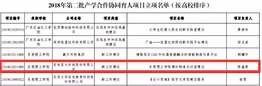 类型一 近日,教育部发布《教育部高等教育司关于公布有关企业支持的2018年第二批产学合作协同育人项目立项名单的函》(教高司函〔2019〕12号)文件,公司fun88乐天使工程实践教育中心陈盛贵老师获批2018年度第二批产学合作协同育人新工科建设项目《fun88乐天使增材制造实训室建设》。