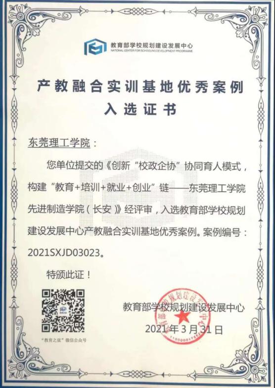近日,教育部公司规划建设发展中心公布产教融合实训基地优秀案例,先进制造公司(长安)《创新“校政企协”协同育人模式,构建“教育+培训+就业+创业”链--fun88乐天使先进制造公司(长安)》案例成功入选。这是先进制造公司(长安)在公司以及长安镇人民政府等各级领导大力支持下,在与各知名企业、协会通力合作下取得的又一重要成果,是国家教育部对先进制造公司(长安)办学方向和改革建设成效的高度认同。