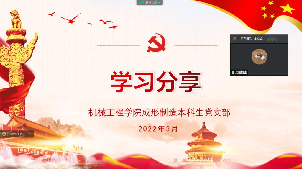 2022年3月12日,fun88乐天使成形制造本科生党支部在线上开展主题党日活动。