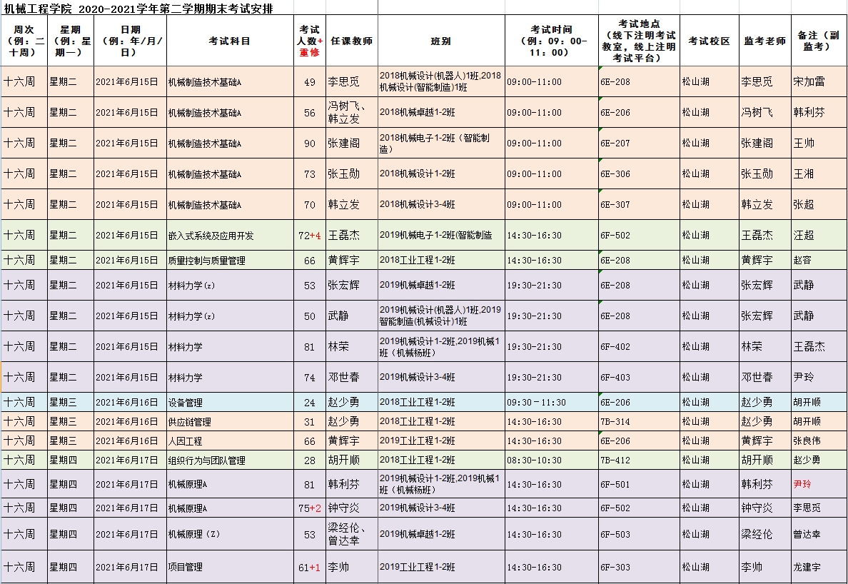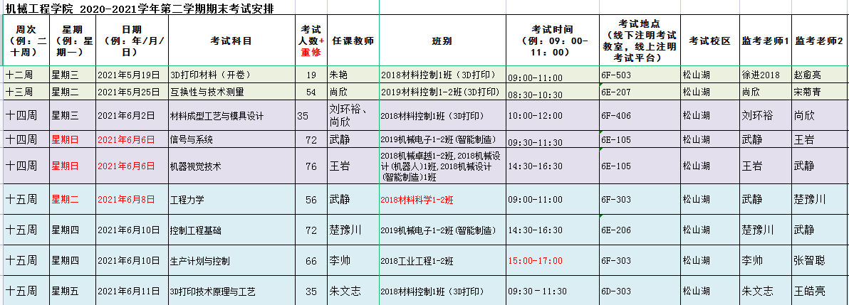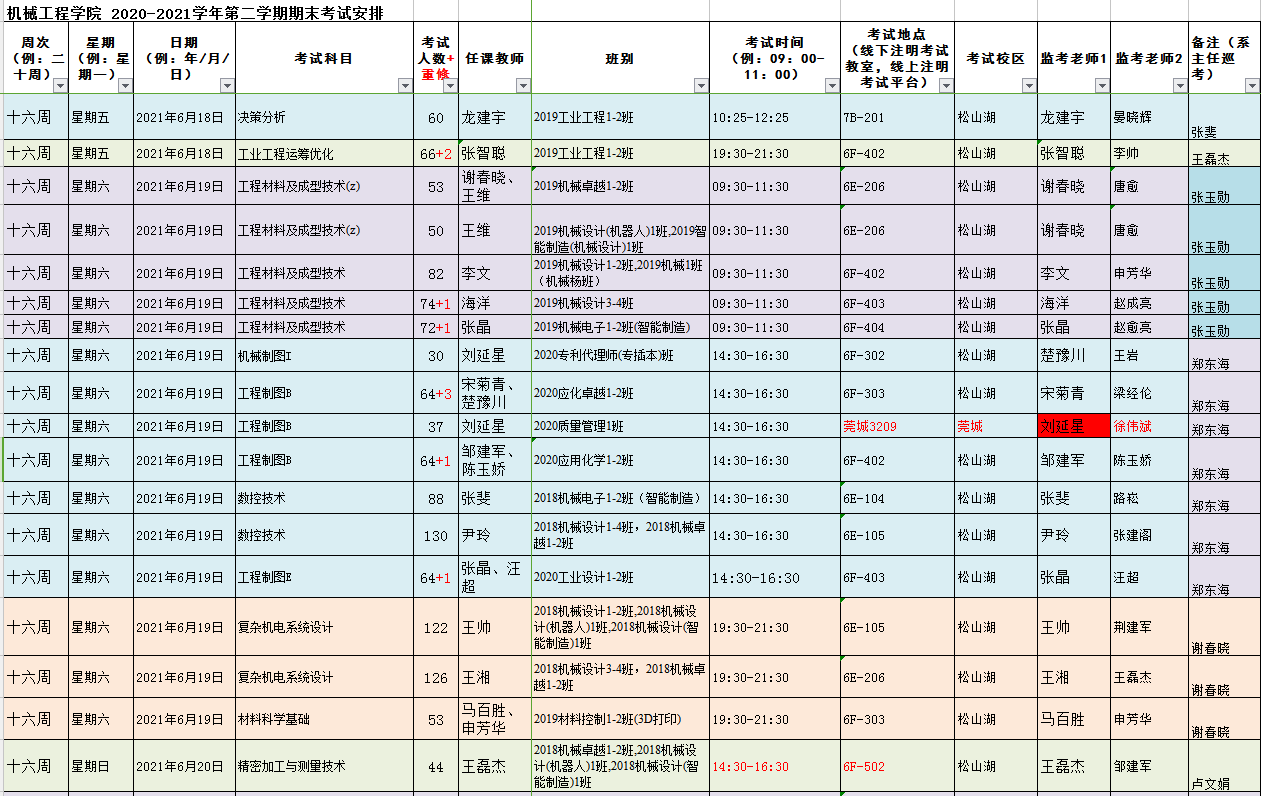 教务处全校公共必修课程考试安排:2020-2021学年第二学期期末考试安排(持续更新,请考生及时关注)