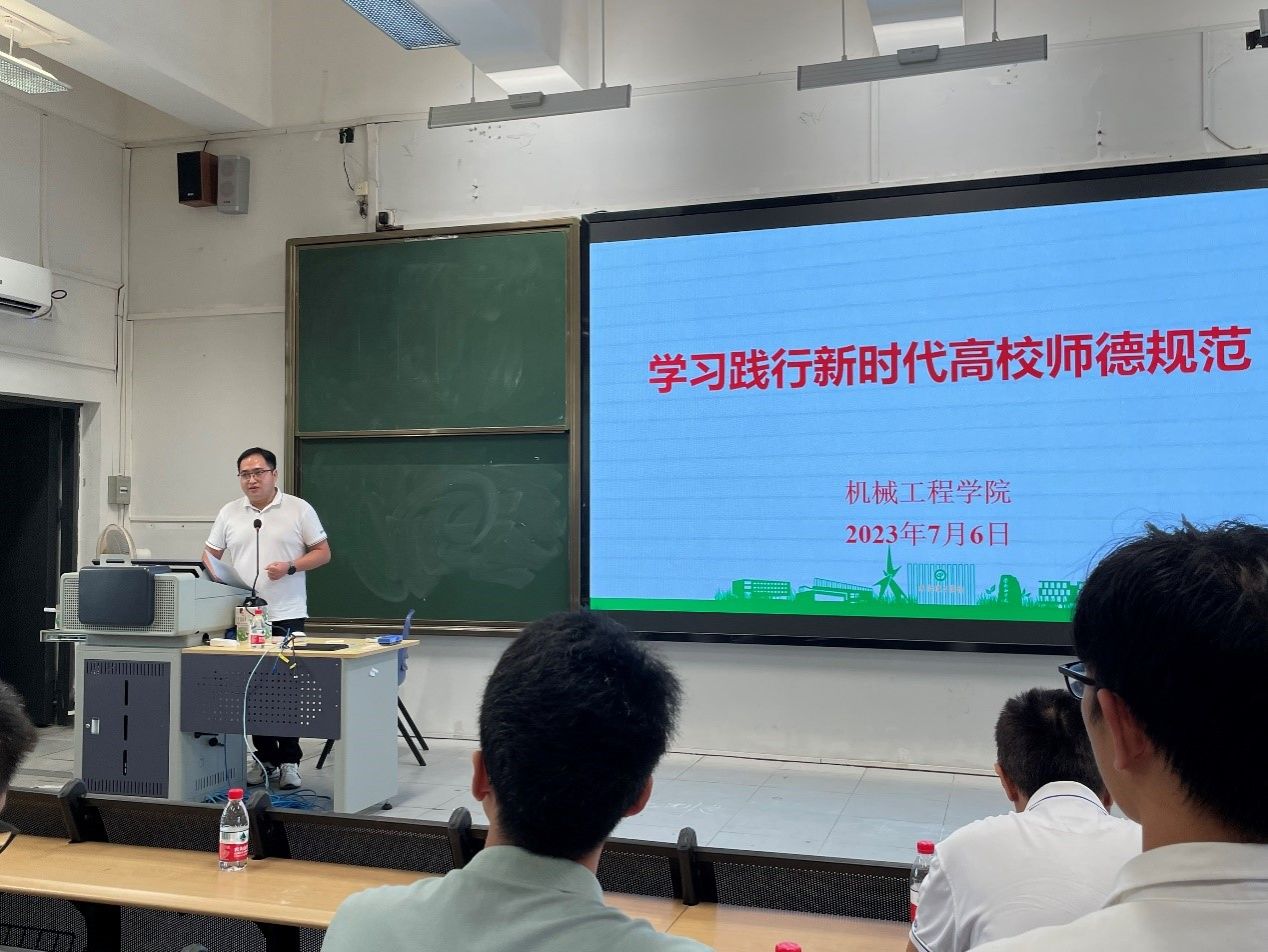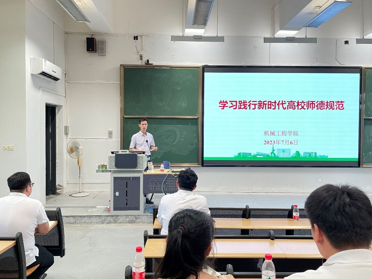 随后,郭建文领学了有关师德教育制度的相关文件。他强调,全体教师要提高政治站位,强化责任担当。要切实提高对师德师风建设的认识,执行高校教师职业行为准则,增强政治意识、底线意识,做“经师”和“人师”的统一者,做“传道、授业、解惑”的统一者。