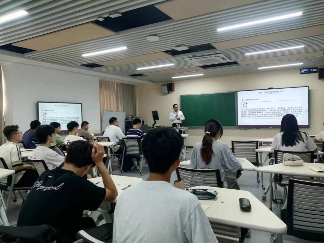 邓维伟首先向同学们宣讲党的二十届三中全会的精神实质及其重要意义。他强调,党的二十届三中全会是在以中国式现代化全面推进强国建设、民族复兴伟业的关键时期召开的一次十分重要的会议。二十届三中全会将进一步全面深化改革的总目标确定为“继续完善和发展中国特色社会主义制度,推进国家治理体系和治理能力现代化”,这适应了凝聚人心,汇聚力量,实现新征程党的中心任务的需要;适应了完善和发展中国特色社会主义制度,推进国家治理体系和治理能力现代化的需要;适应了推动我国各方面事业高质量发展的需要;适应了应对重大风险挑战,保证中国这艘巨轮行稳致远的需要;适应了满足人民对美好生活新期待的需要。接着,邓维伟结合习近平总书记关于全面深化改革的重要论述,详细阐述了党的领导是如何成为改革发展的根本保证,并鼓励同学们要坚定理想信念,增强“四个意识”,做到“两个维护”。