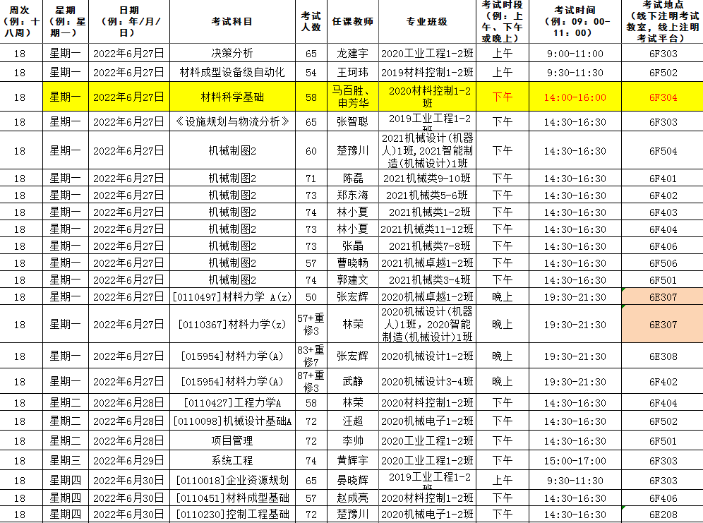 以下为fun88乐天使开课课程考试安排
