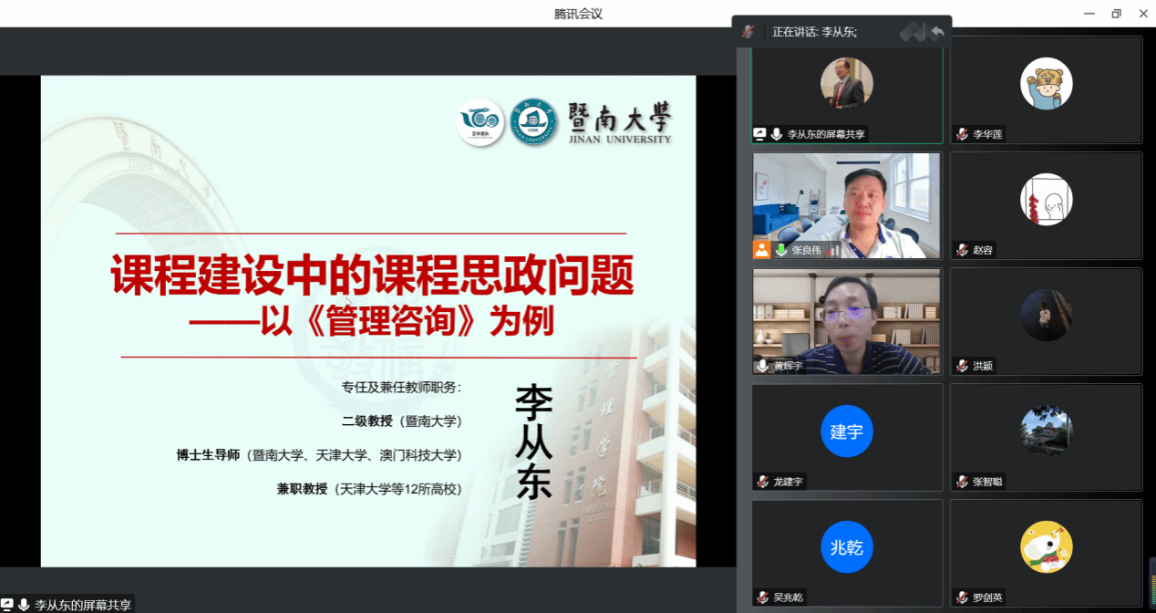 课程思政是新时代高校思想政治教育改革的重点方向。为加强课程思政建设,fun88乐天使工业工程系于10月27日开展“课程建设中的课程思政问题——以《管理咨询》为例”为主题的讲座。会议特邀了《管理咨询》国家级一流课程负责人、暨南大学李从东教授进行指导分享。本次讲座以线上的方式开展,由工业工程系主任张良伟主持,fun88乐天使副经理黄辉宇和工业工程系全体教师线上参与。李从东教授首先提出课程思政建设需依托国家教育...