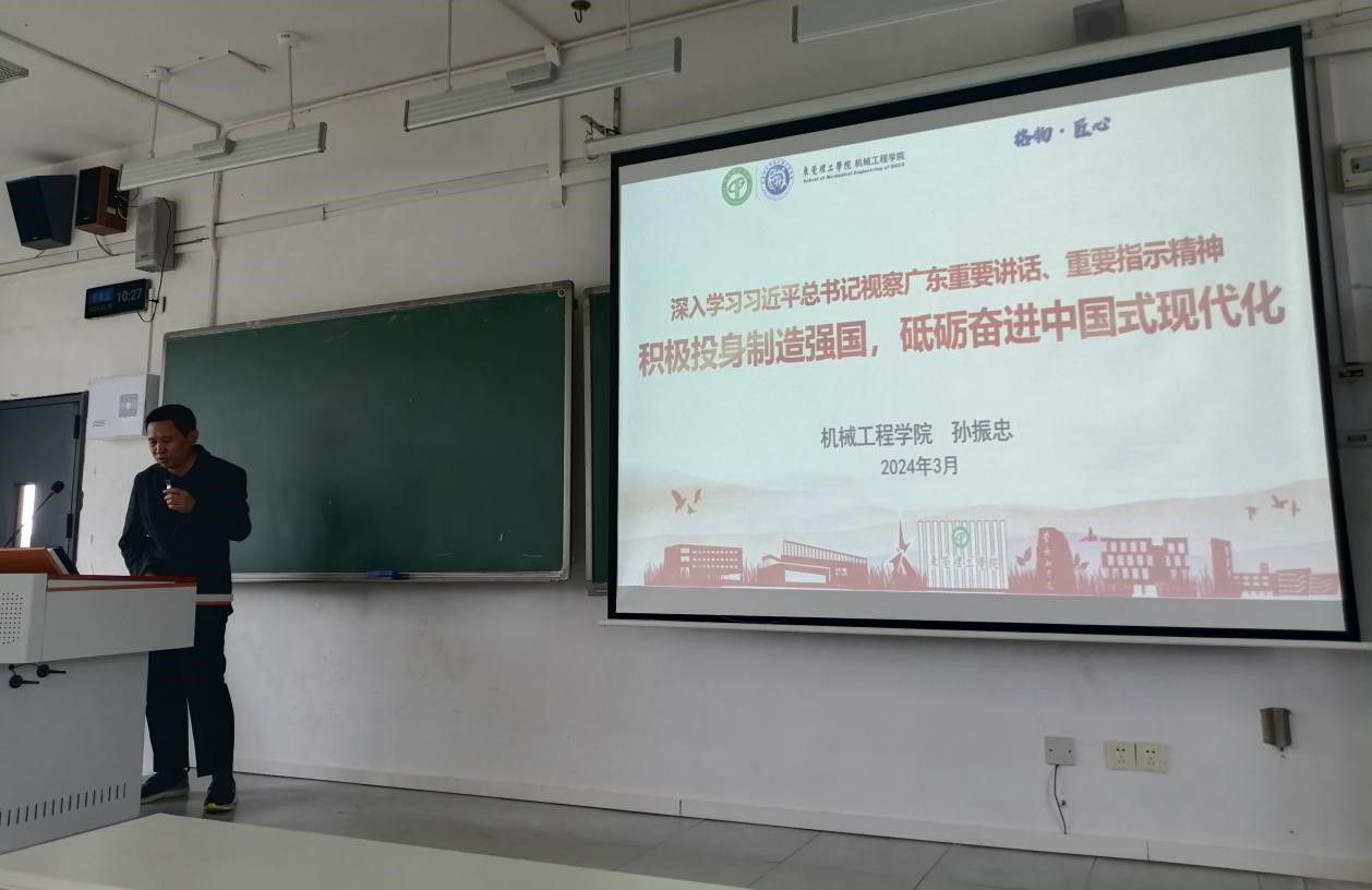 3月15日,fun88乐天使经理孙振忠以“深入学习习近平总书记视察广东重要讲话、重要指示精神,积极投身制造强国,砥砺奋进中国式现代化”为主题,为2022级微机电系统工程1班、2班和机械电子工程1班、2班的本科生上2024年春季学期思政第一课。课上,孙振忠围绕习近平总书记在广东视察时的殷殷嘱托,与同学们分享了自己的学习体会和思考,并指出了广东不平衡不充分的发展现状以及对实干型和技术性人才需求的日益增加。孙振忠指出,...